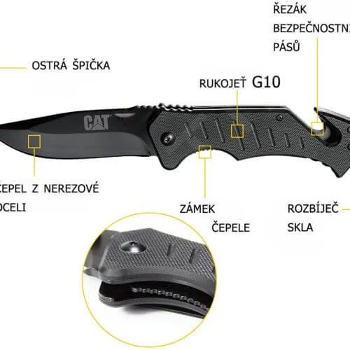 Il manico G10 ha una superficie antiscivolo e antiaderente, che rende più facile e sicura la presa del coltello in ogni condizione. Il tutto è supportato da una robusta e solida struttura in acciaio inox. Il coltello è dotato di rompivetro in tungsteno e tagliacinture di sicurezza, per esservi utile anche in situazioni critiche. La lama lunga 8,2 cm è affilata come un rasoio, in grado di tagliare e premere allo stesso modo. Il colore nero della lama e del manico in acciaio inossidabile conferisce al coltello un aspetto satinato ma tattico, riducendo i riflessi sul campo. La scanalatura del bordo superiore, la scanalatura e la protezione per le dita aumentano la sicurezza e la protezione in situazioni di forte sollecitazione.